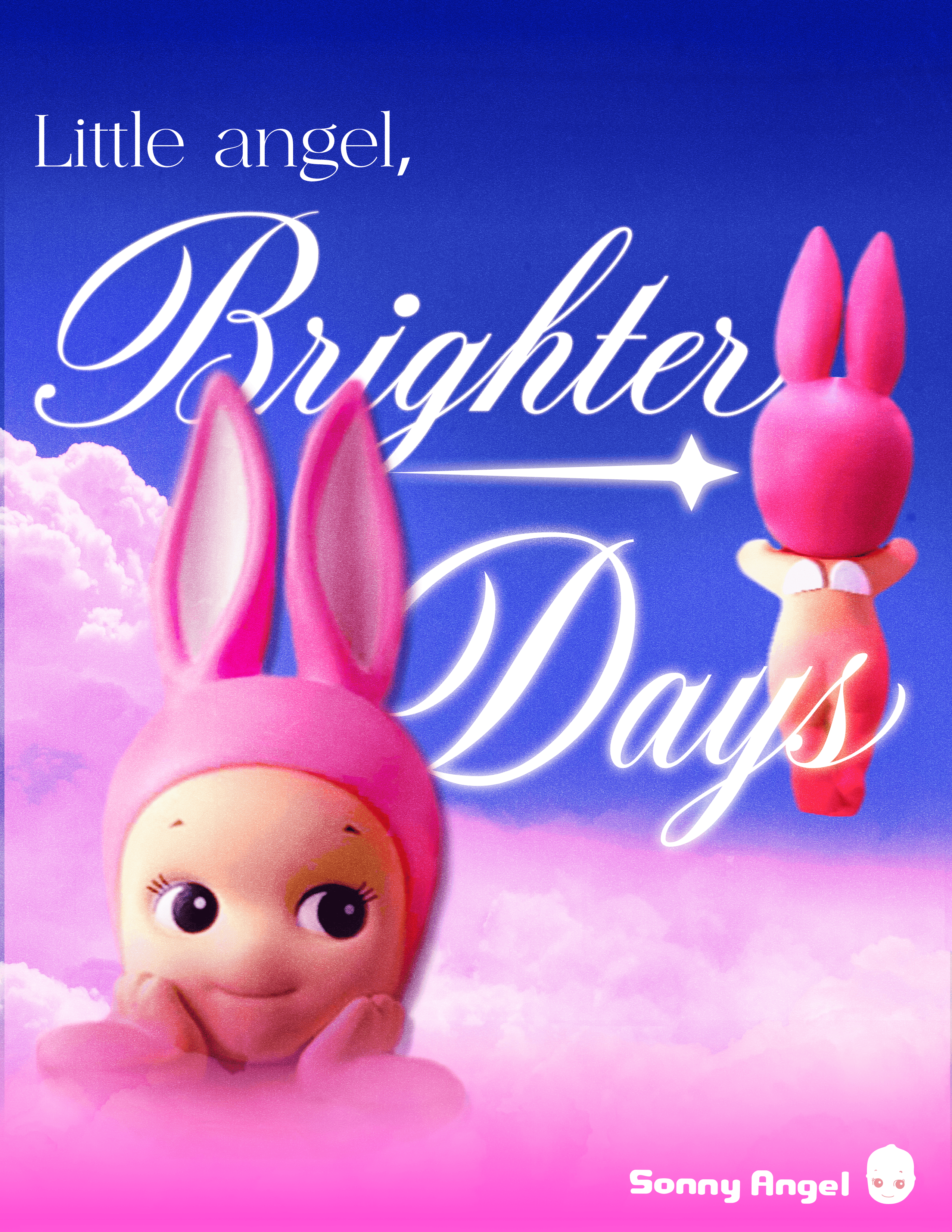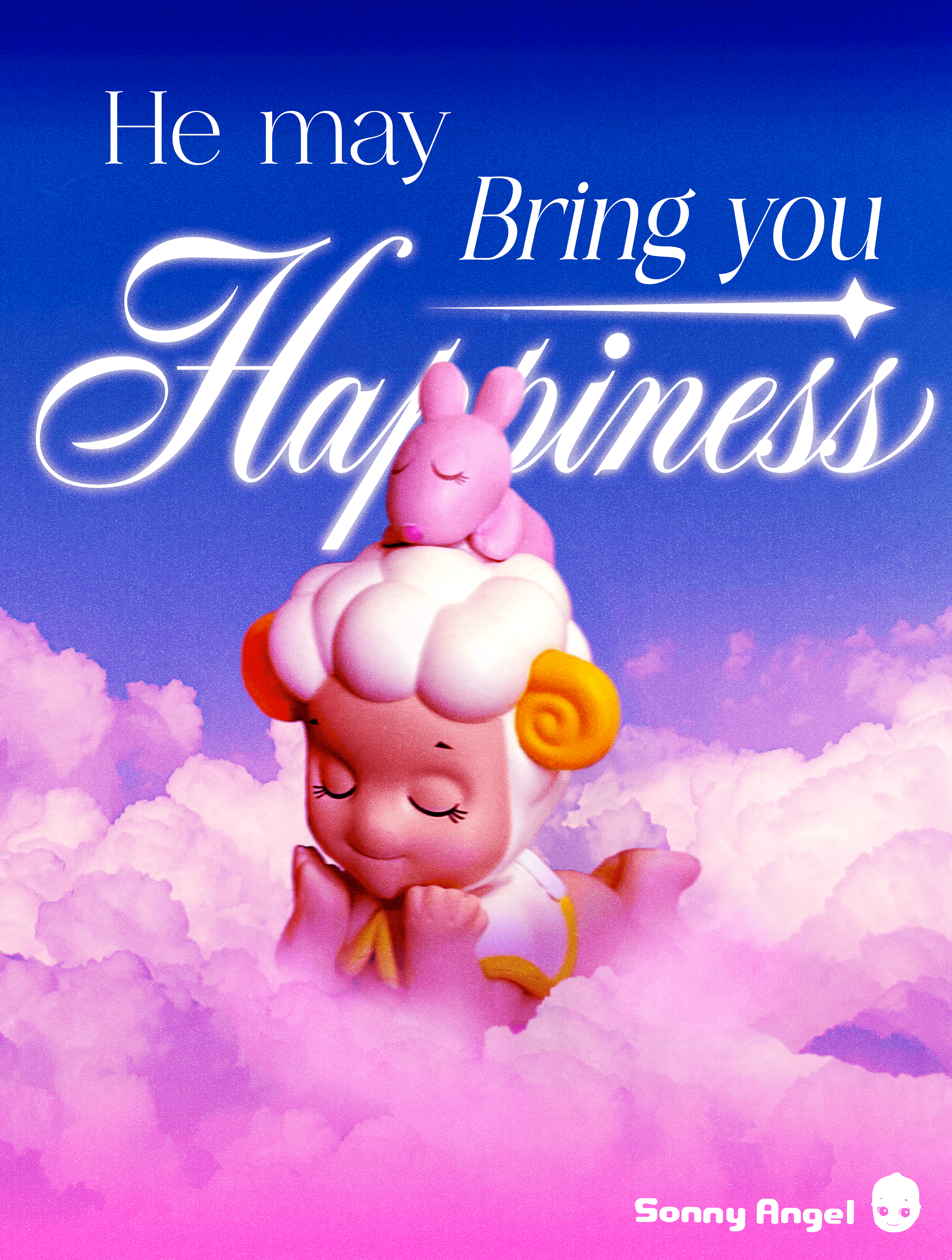 This poster concept was created for Sonny Angel blind box figurines, inspired by the brand’s iconic phrase, “He may bring you happiness,” to reflect its themes of joy and emotional connection. The design uses a dreamy, heaven-like atmosphere with soft yet vibrant blues, pinks, and purples to create a playful, whimsical visual that aligns with the brand’s collectible charm.\