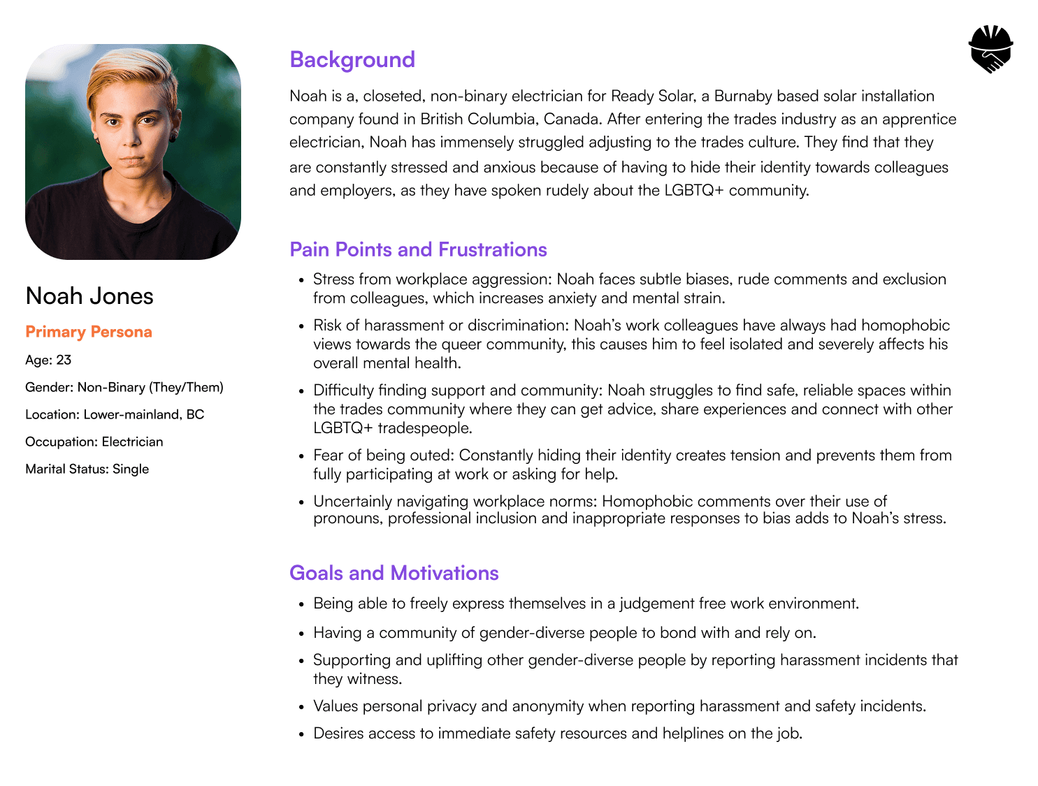 Using user personas to stay grounded in real experiences, we mapped flows and structure to support quick, discreet actions in high-stress worksite conditions.